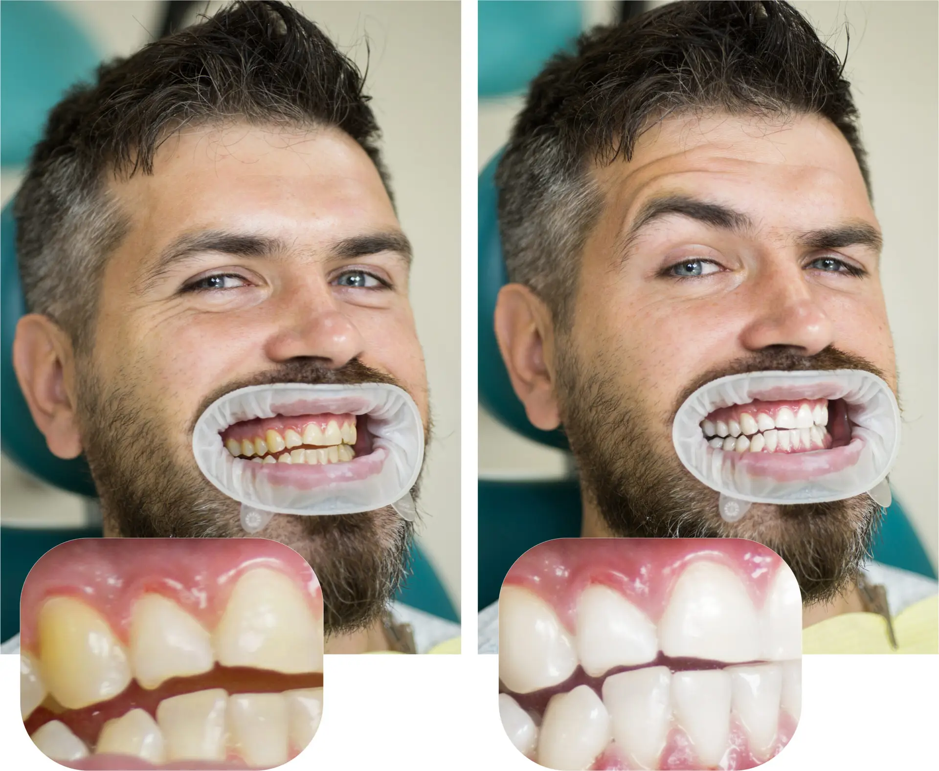 Aclara varios tonos en una sola sesión, con tecnología segura que protege el esmalte y mejora el brillo natural de tus dientes.